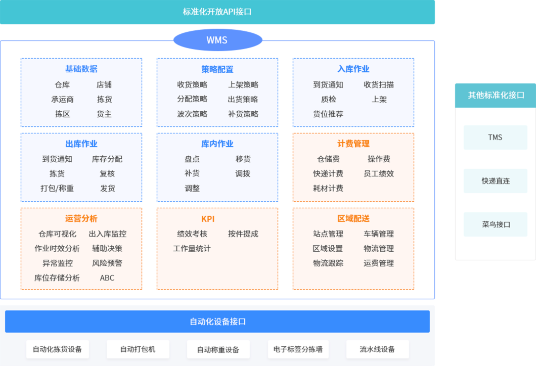 梅施WMS仓储管理系统是针对仓储精细化操作,专注于仓储实物现场管理与执行过程的管理软件系统。梅施WMS主要面向工业领域的订单出入库操作。提供业界领先的一体化仓储管理解决方案。